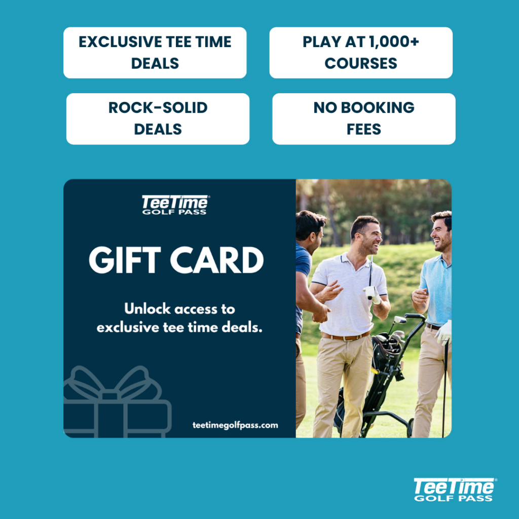 Our golf gift cards can be redeemed to purchase the TeeTime Golf Pass, which provides tee time deals at top golf courses. It’s the perfect way to save on green fees and explore different golf courses.
